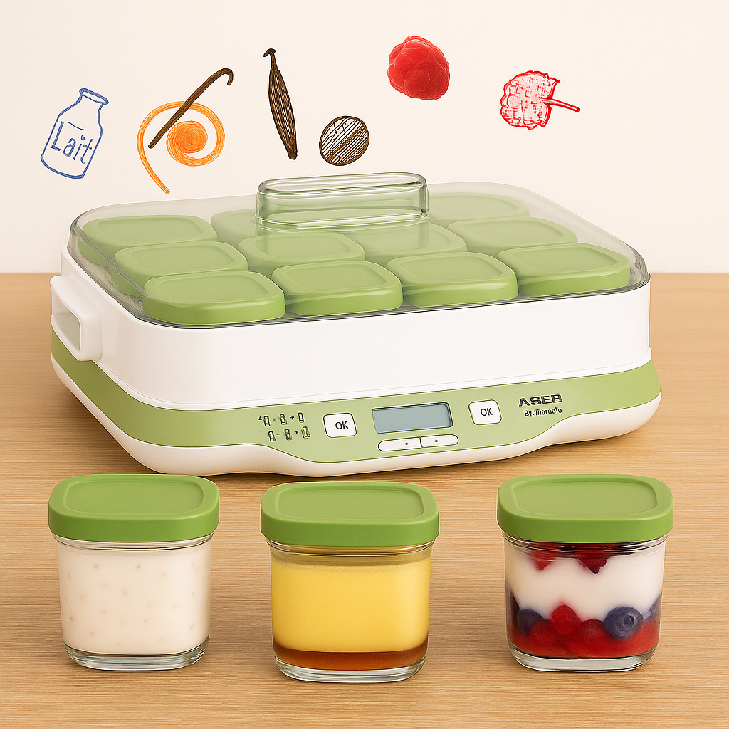 Prepare your own yogurts, creamy desserts, or panna cotta with the SEB yogurt maker 12 jars, 6 programs.